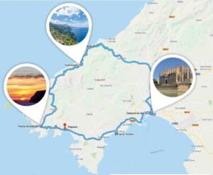 Diese Tour vereint die Highlights der mallorquinischen Südküste mit den beeindruckenden Ausblicken der Nordwestküste.
