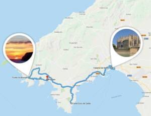 Route: Malgrats-Insel – Palma Yachthafen – Kathedrale – Banyalbufar – Estellencs – Port Andratx – Camp de Mar.